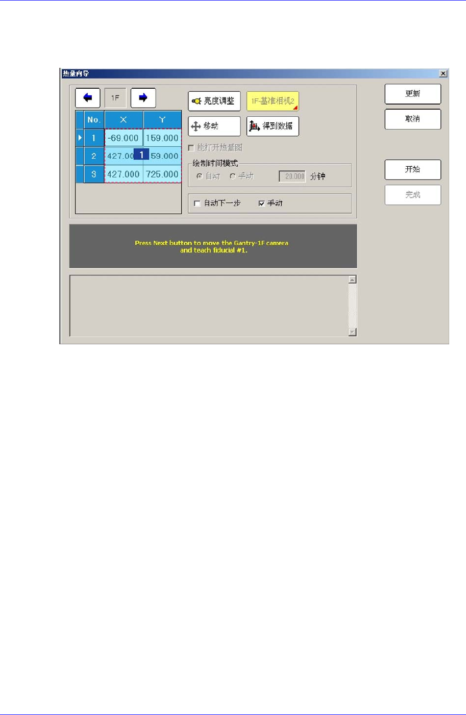 把相应Gantry的基准相机移动到在Grid领域中选择的Fiducial Mark位置。