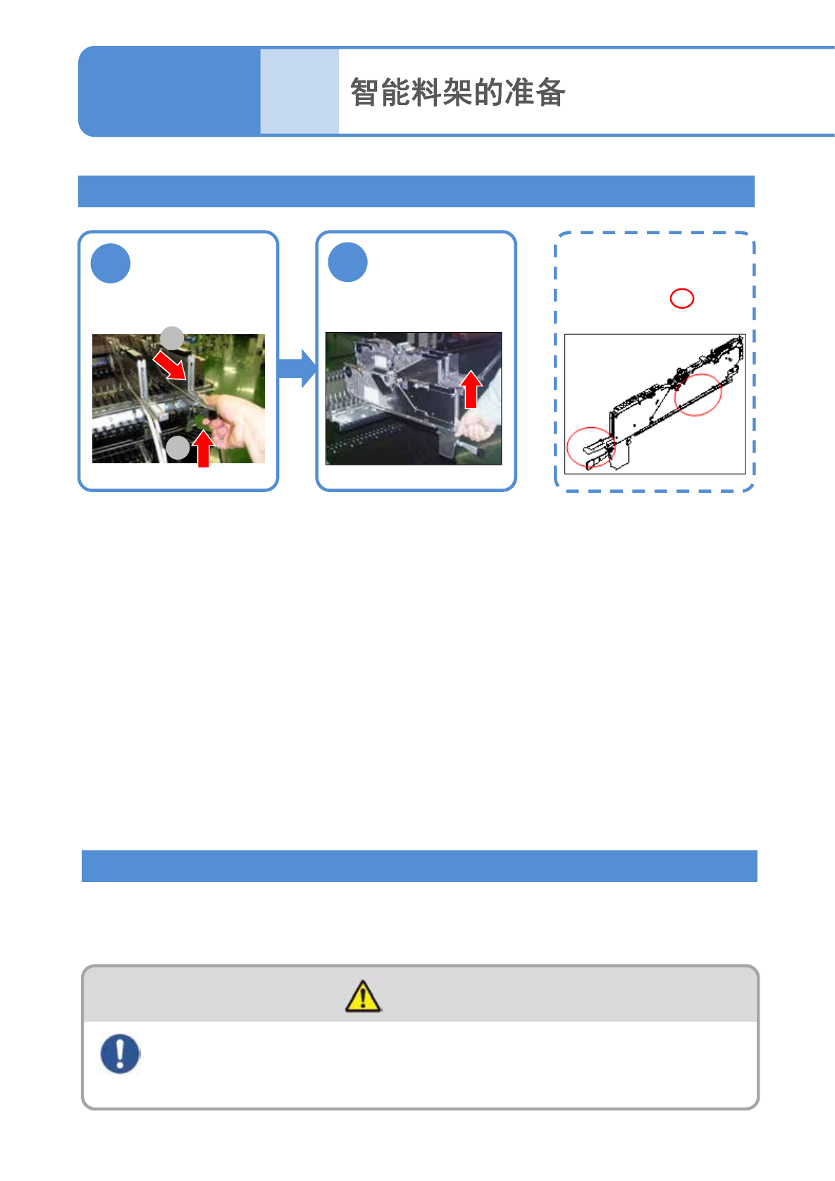 NPM-TT2 EJM1EC-MB-02O-00 离 线 准 备 2 2-4-1 -3 操作篇 2 - 4 - 1 卸下双式编带料架 2 架起后部,用双 手拉出 1 往上拉杆,拉出料 架 1 2 料架的拿法 用双手拿住 部 在交换台车上准备料架,切换机种时即 可进行料架的整体更换。 ( → “维修保养篇”的 P.3-2) 通过交换台车 ( 选项 ) 进行整体更换 警告 移动交换台车时,注意周围情况 ( 如果撞击到他人,有可能会导致受伤 …