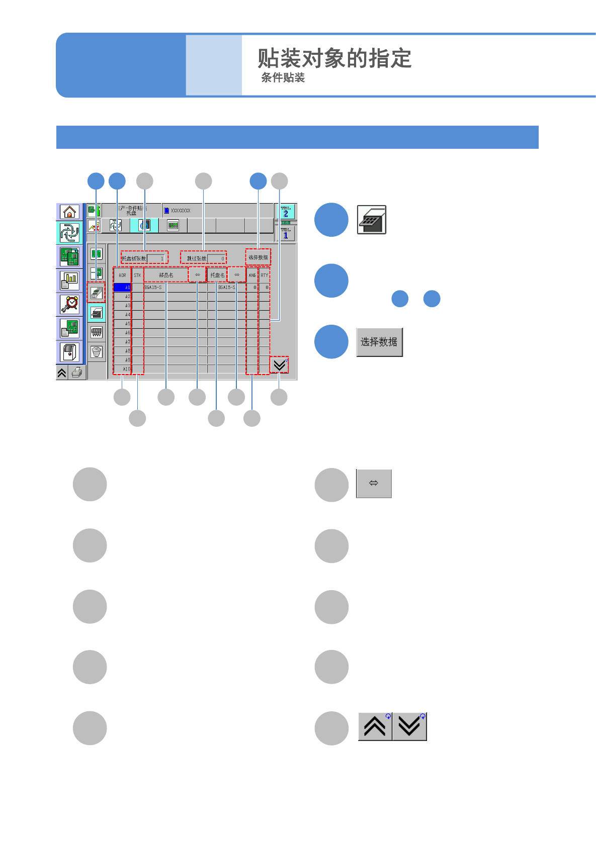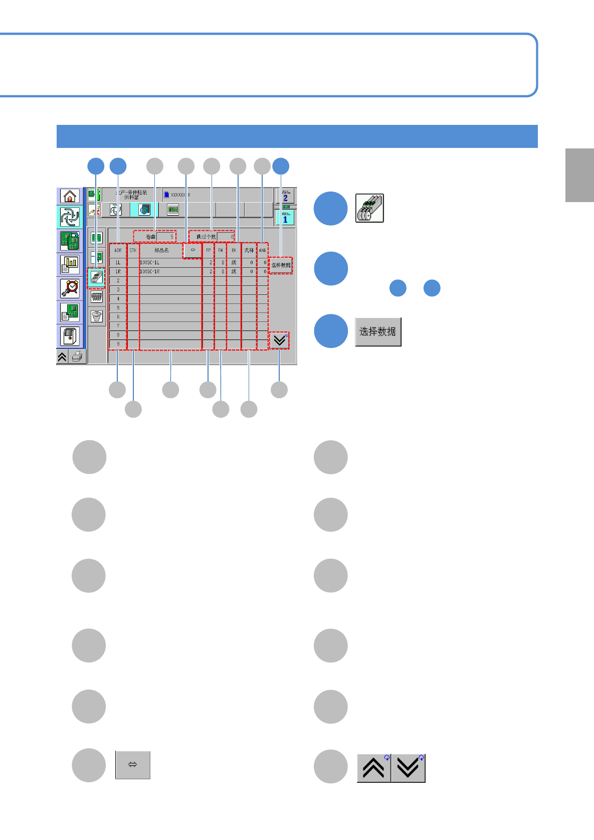 NPM-TT2 EJM1EC-MB-02O-00 2 1 1 2 选择图案 A E F G B C D I H 3 K L J 2-5-6 -4 A B C H I J G K L 3 根据元件指定 ( 智能料架 ) D E F ●重复 ~ 的 操作,可以 复数选择。 2 3 ●再按一次,解除选择。 卷盘数量 配置的料架数量。 跳过个数 指定跳过的料架数量。 ADR 配置料架的插槽编号和配置元件的料 架地 址。 STK 元件的 ID 编…