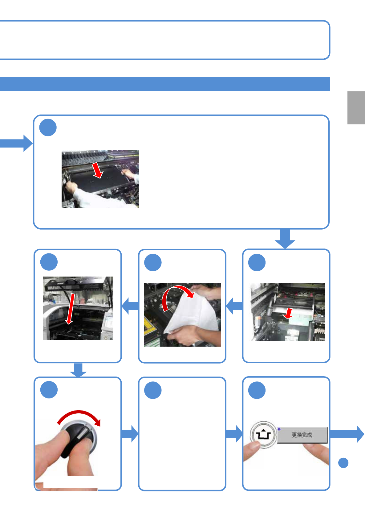 NPM-TT2 EJM1EC-MB-02O-00 2-5-7 -4 1 0 安装基板支撑块 ( 自动更换用 ) 时,注意请勿倾斜安装 ( 可能与轨道有干扰 ) ●设置支撑销时,注意 请勿碰撞到轨道等。 ●设置好基板支撑块后 ,将支撑销安装到螺栓侧, 并确 认支撑销紧靠螺栓 。 1 2 1 1 取下棉纱布 1 3 ACTIVATION 安装托盘供料器 或者交换台车 ●托盘供料器时 ( → 『维修保养篇』 P.14-8) ●交换台车时 ( …