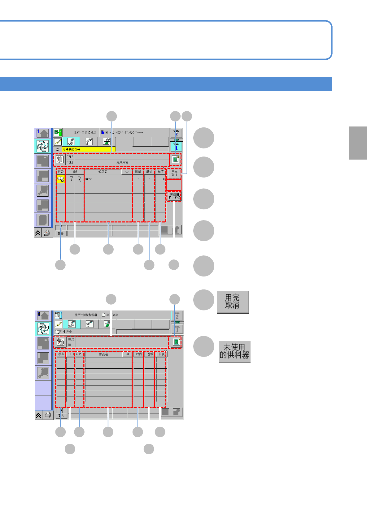 ●显示料架的元件的吸着状况。