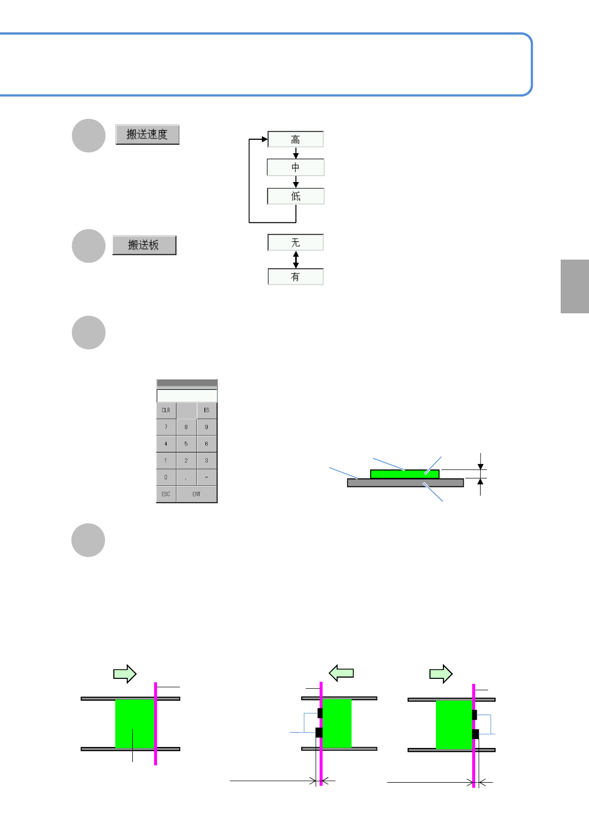 ●贴装完毕元件超出基板左右端面,输入其超出部分的最大长度。
