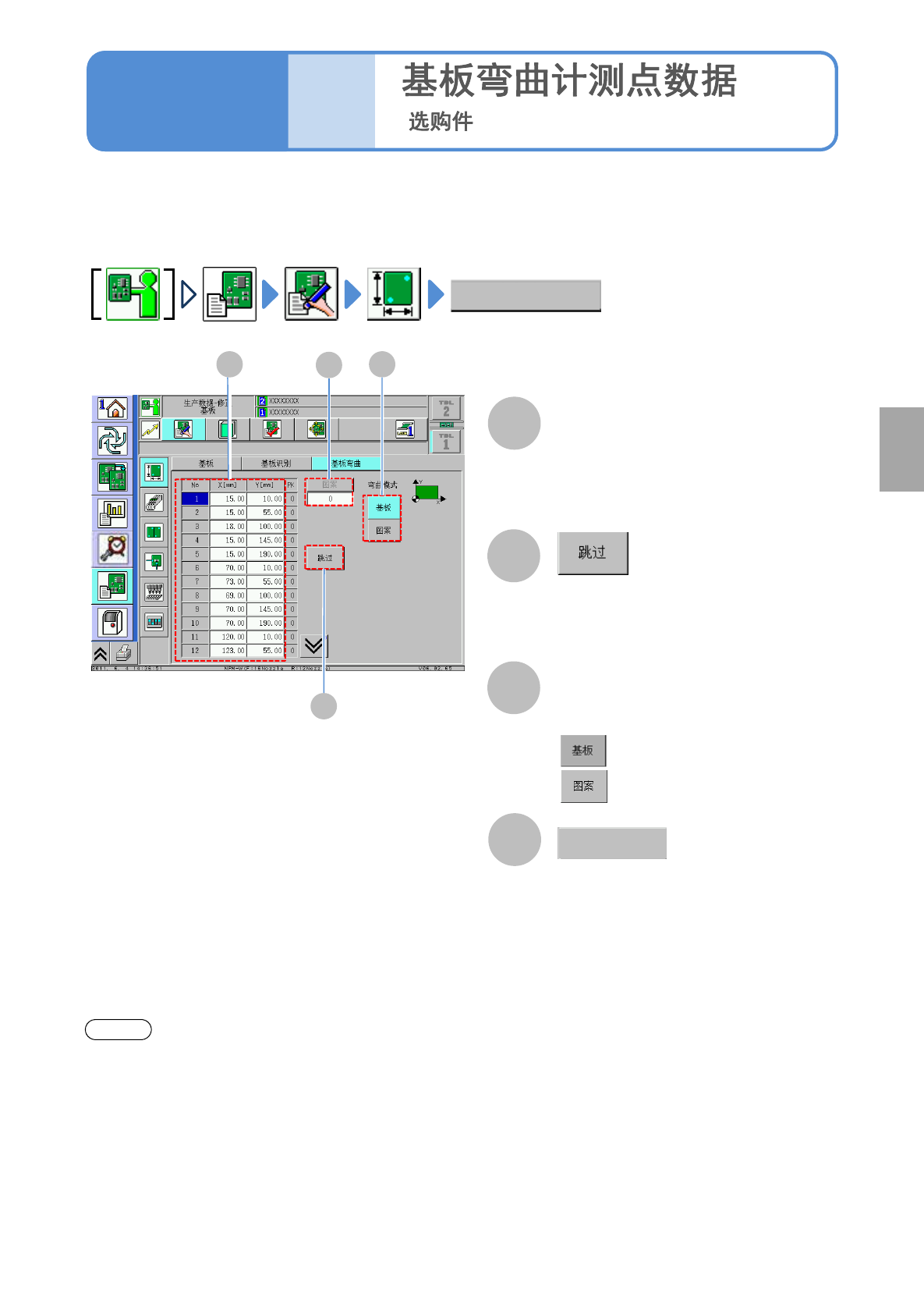 在这里对确认、修改基板弯曲计测点数据的方法进行说明。
