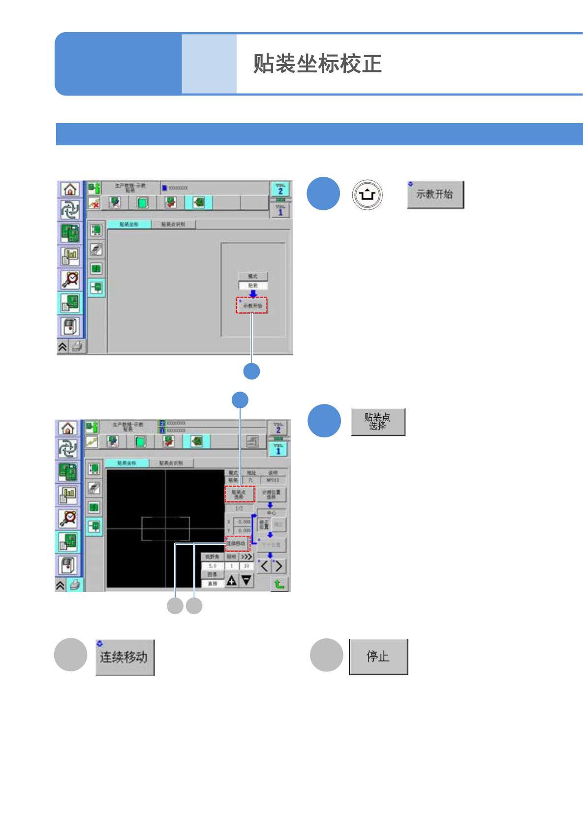 请在执行示教的坐标上按[停止]按钮。
