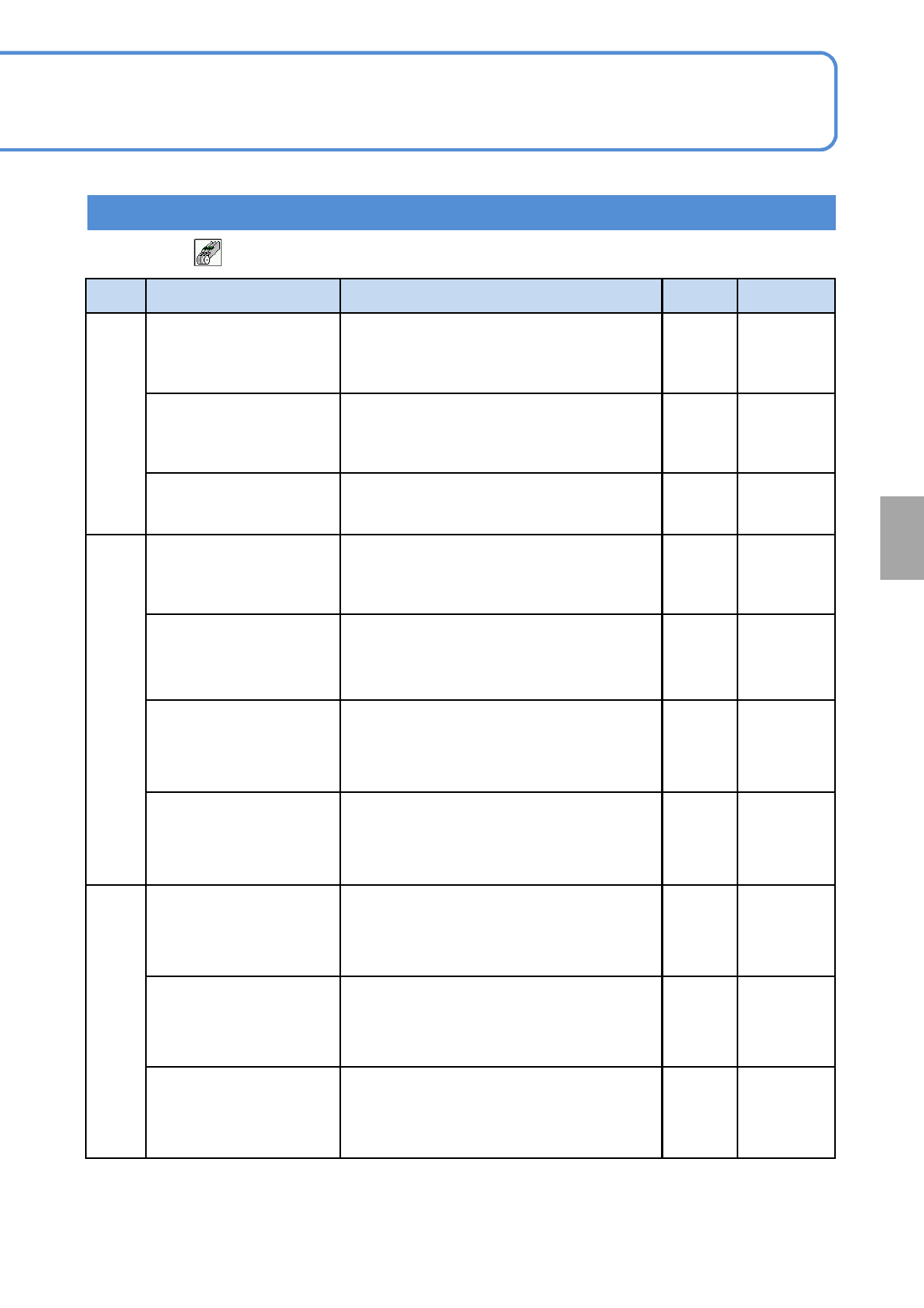 NPM-T T 2 EJM1EC-MB - 05O-01 单 元 设 定 4 5-1 -2 -7 设定 的内容 6 操作篇 5 - 1 - 2 ■传送带 (4/4) 种类 项目名称 内容 初始值 设定范围 机械 2mm 第二原点 补偿值 (-)[m m ] 与 2mm 供给料 架的第 二原点 补偿值相 应的极 限值 (-) -1.0 -1.0 ~ 0.0 2mm 第二原点 补偿值 (+)[ mm ] 与 2mm 供给料 架的第 二原点 …