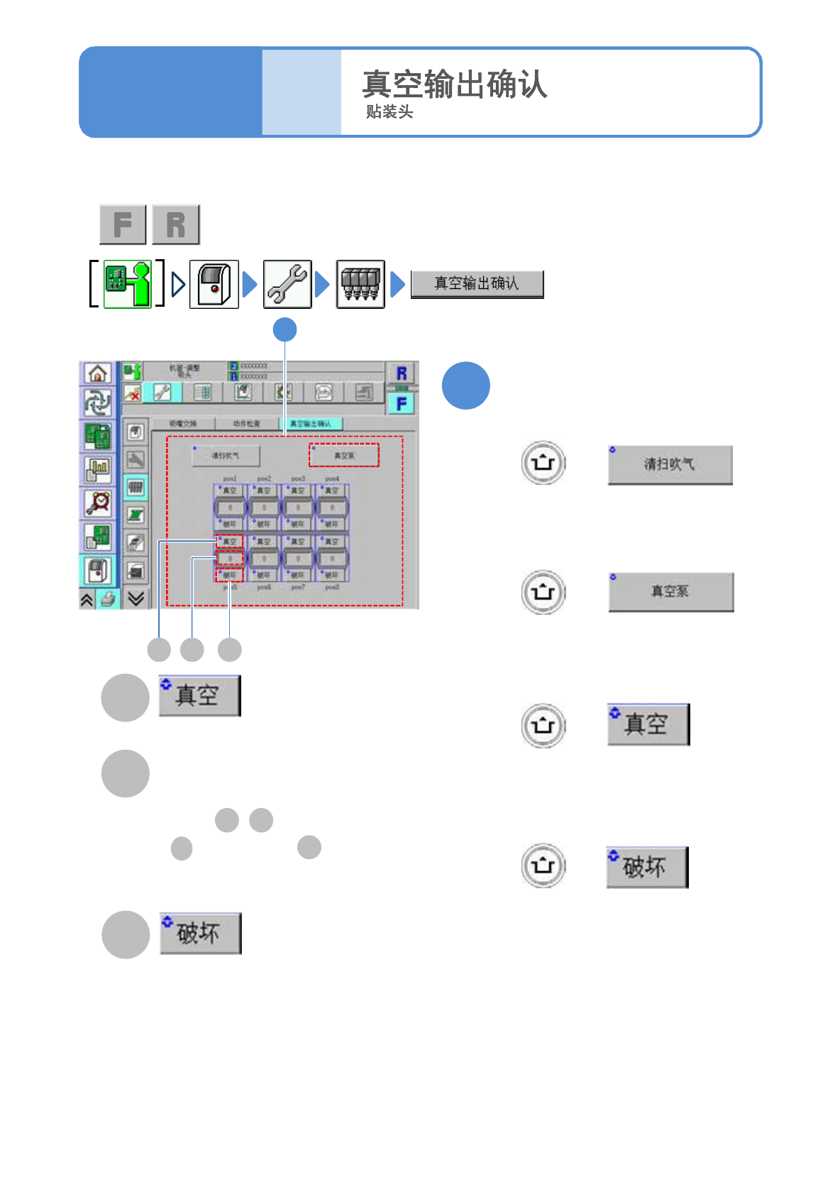 切换阀门,对于真空、吹气时的动作是否正常进行个别确认。