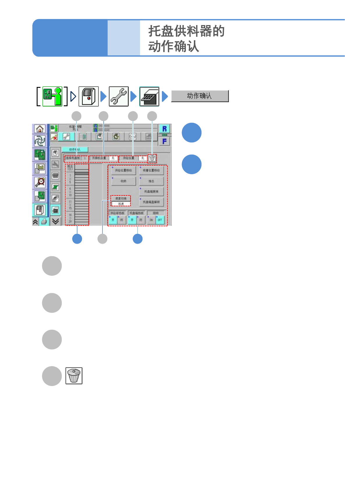 确认托盘供料器内的各种功能的动作。