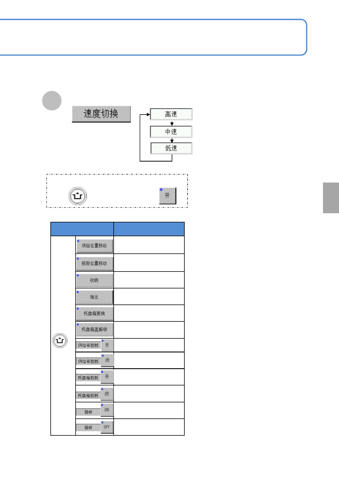 选择托盘板的移动速度。