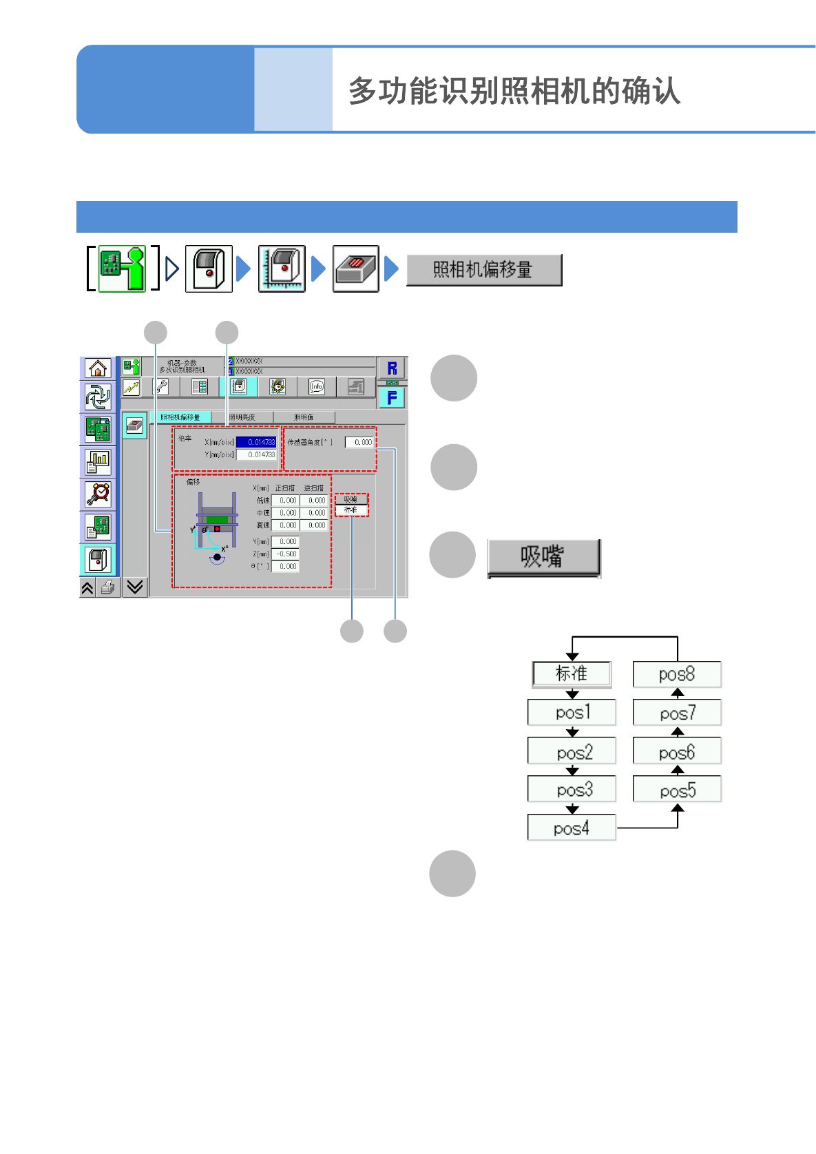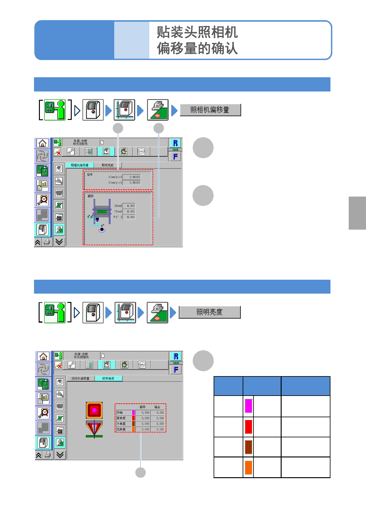 确认多功能识别照相机的倍率、照明亮度、指示灯值的偏移值(校准的结果)。