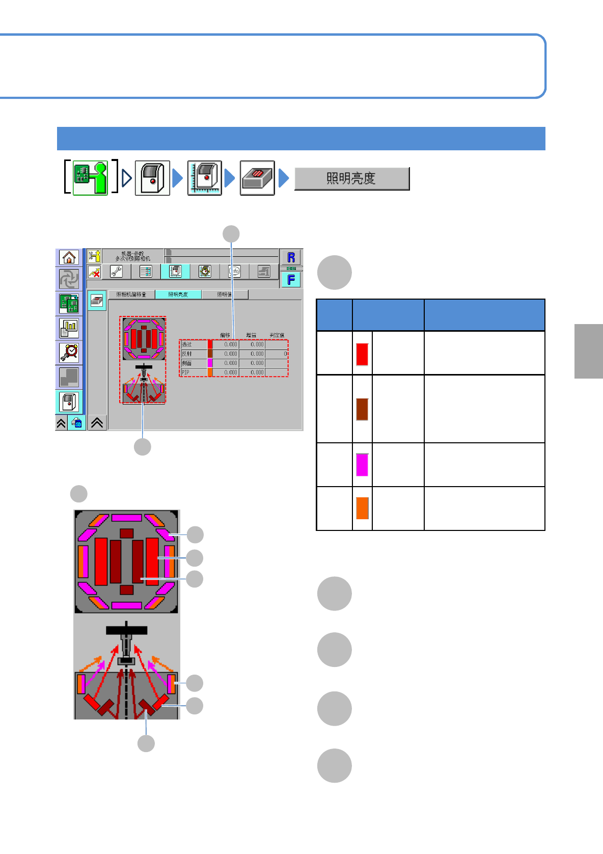 NPM-T T 2 EJM1EC-MB - 05O-01 5-3- 10 -3 机 器 参 数 2 操作篇 5 - 3 - 1 0 A 照明模式 ●透过 : 透过模式 ● 1: 反射 1 模式 ● 2: 反射 2 模式 ● BGA: 反射 BGA 模式 設備に設 置され ている フィー ダー の メモリ ー 情報 を表 示します 。 多功能识 别 照相 机照明 值 B 照明 C 基准值 各照明的 照明模 式的指 示灯基准值。 D 偏移值…