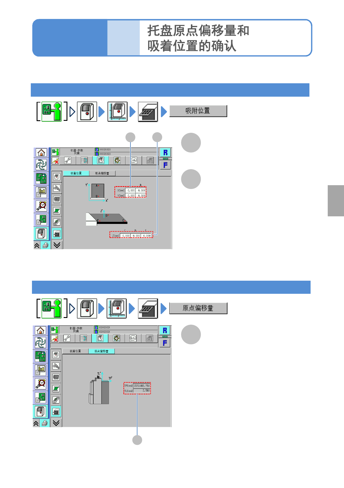 确认托盘供料器的吸着位置的偏移值、TP轴和TL轴的原点偏移值。