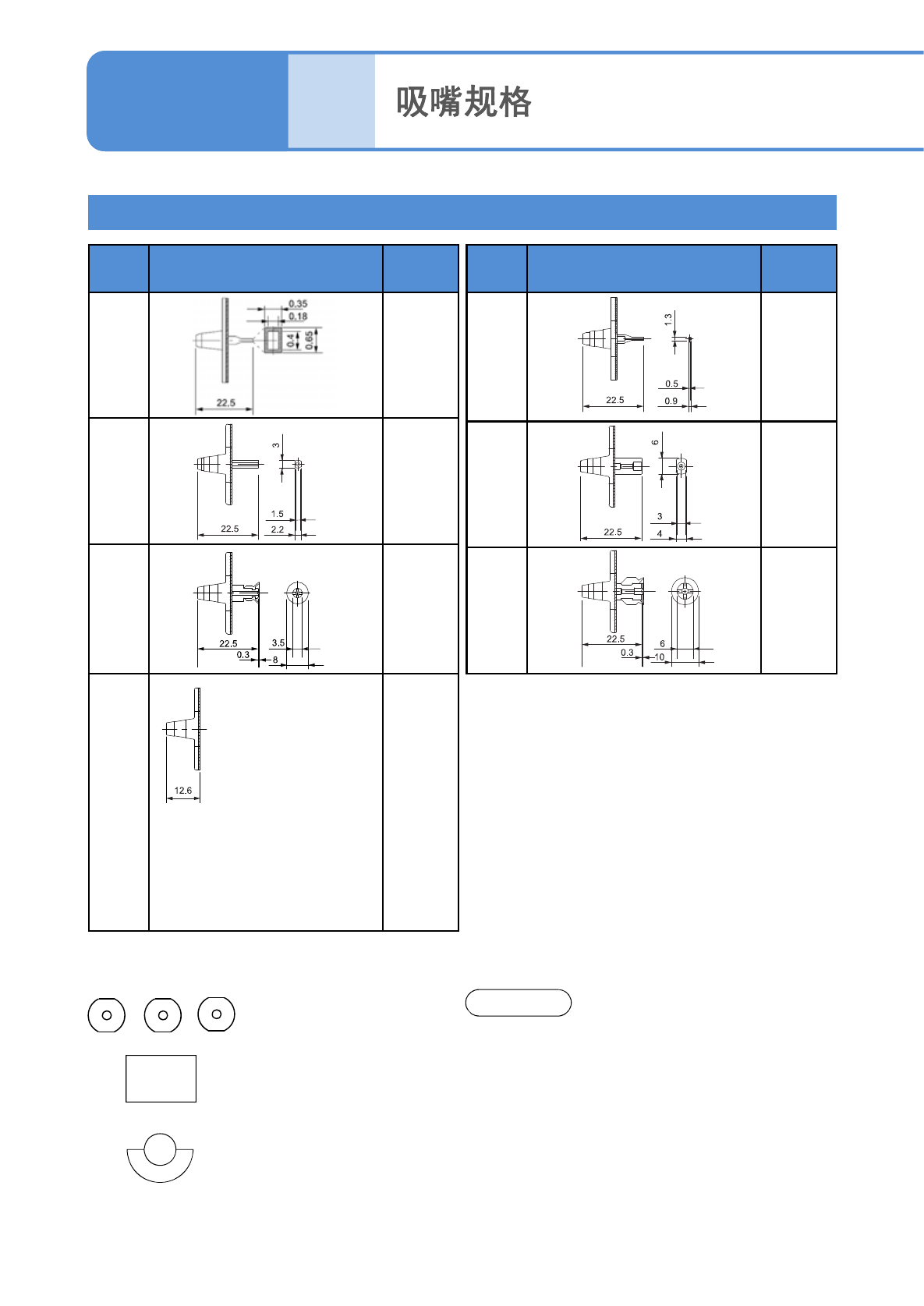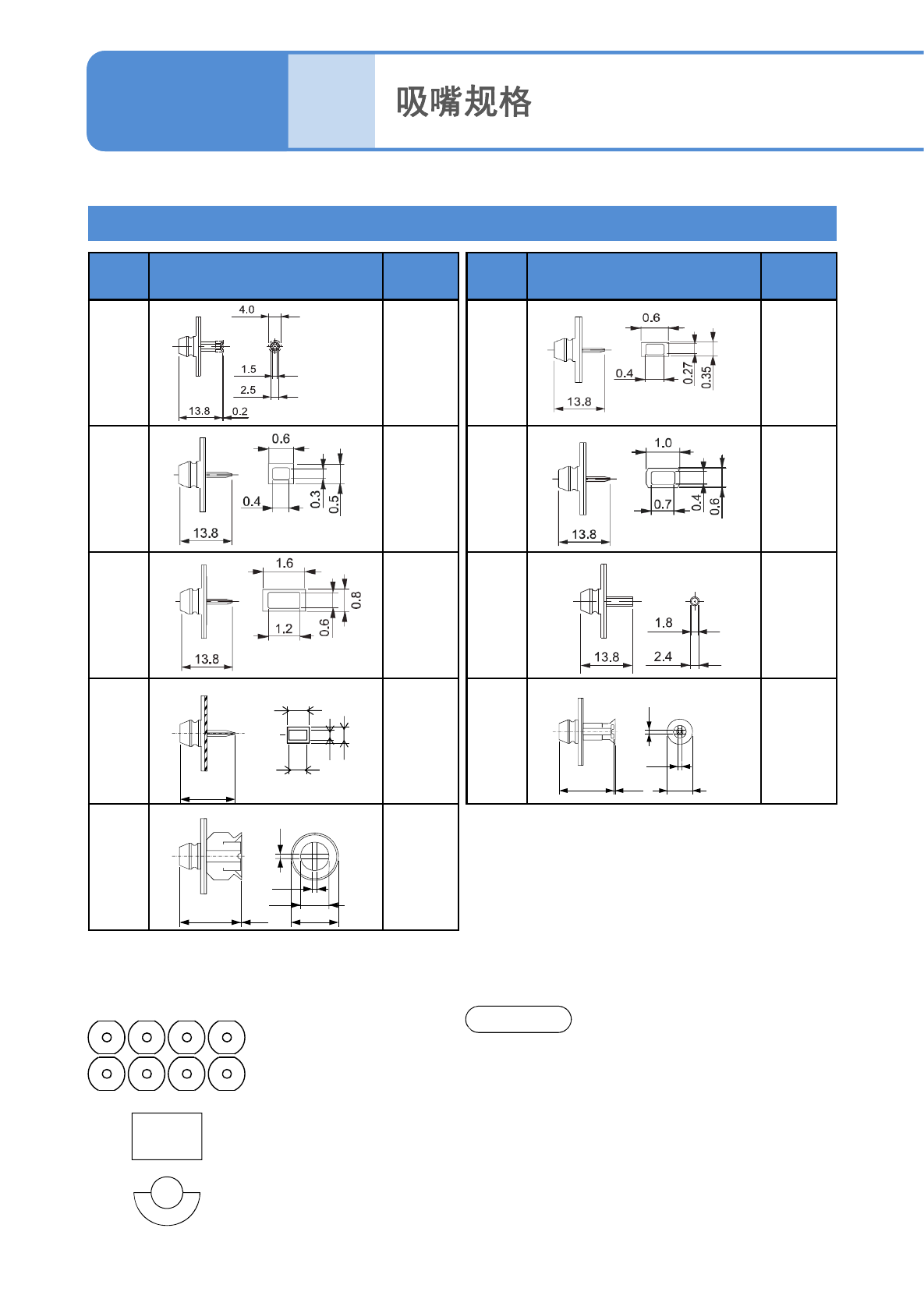 ●8吸嘴贴装头用吸嘴,上述9个种类是标准规格,