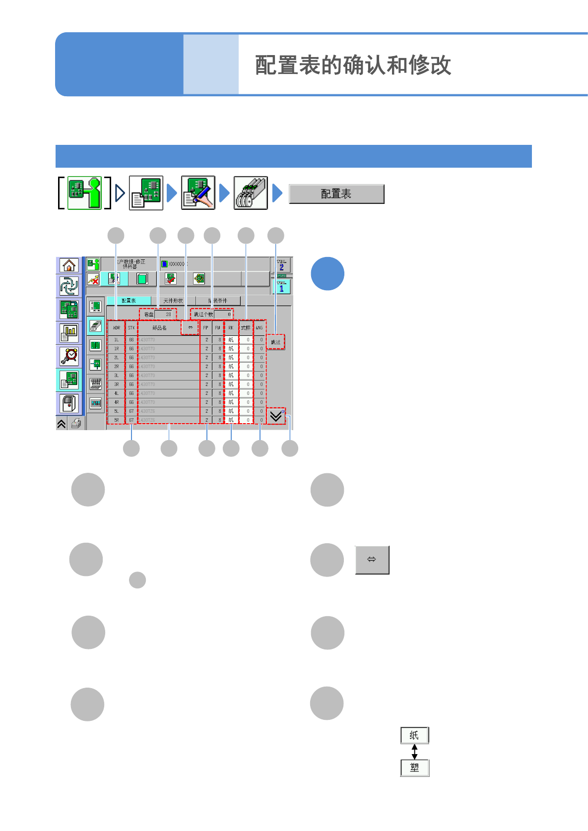 对料架工作台上的料架和托盘上的托盘板配置、存储状态的确认和修改方法进行说明。