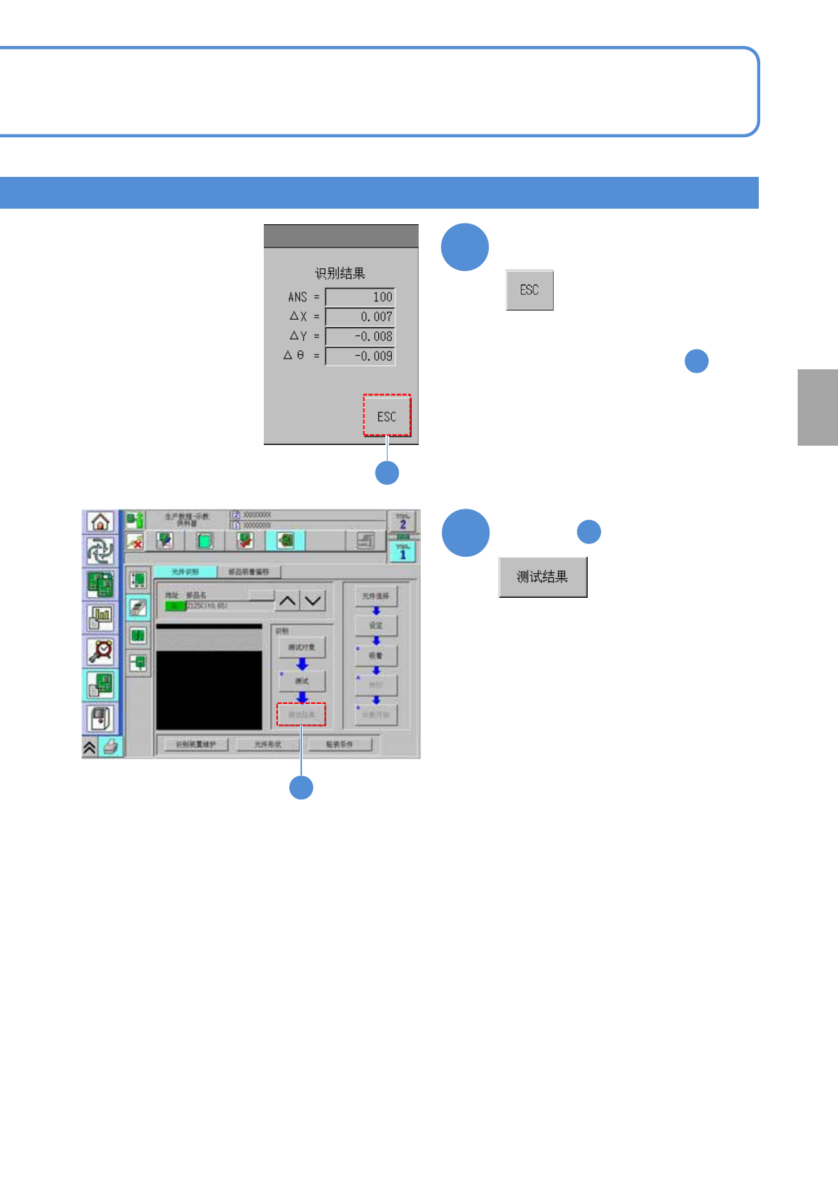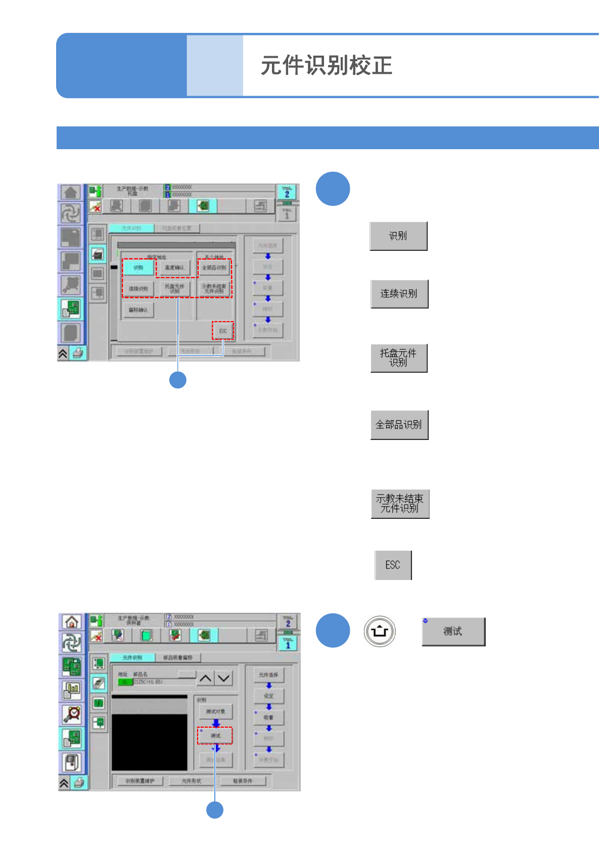 NPM-TT2 EJM1EC-MB-04O-00 4-2-4 -9 生产数据 校正 5 元件识别校正 4 操作篇 4 - 2 - 4 17 选择识别方法 ■ 1 次识别时 ■ 10 次识别时 ■不选择识别方法时 18 + 18 17 ■识别托盘元件时 ■对从选择地址到最终 地址的全部元件都 进行识别时 ■从选择地址到最终地 址,对没有元件示教 实绩的全部元件都进行识别时