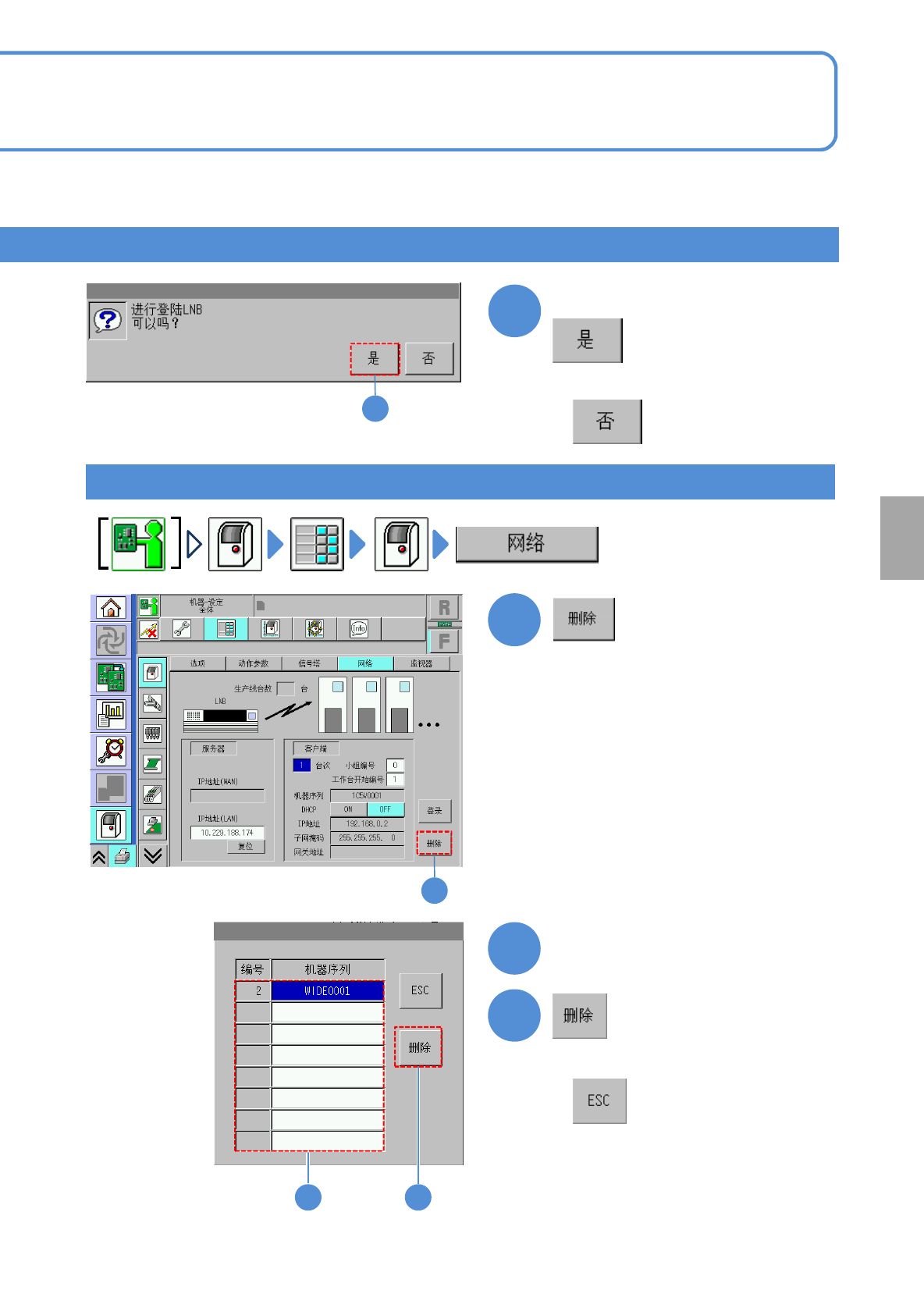 NPM-T T 2 EJM1EC-MB - 05O-01 5-1 -4 -2 3 3 3 1 2 3 2 选择设备编号 确认提示 ( 显示登录在 LN B 的设备一览 ) 删除设定 ■不登录 时 ■不删除 时 1