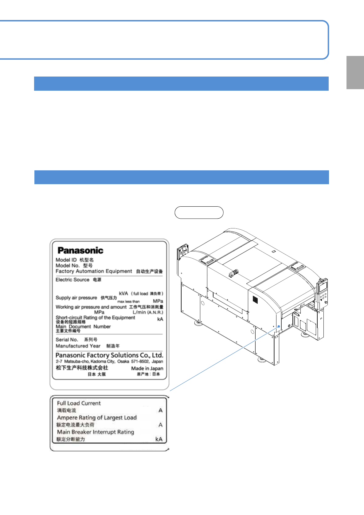 产品名称 (Model ID)、表示序列编号 (Serial No.) 的产品标牌,粘贴在下图位置。