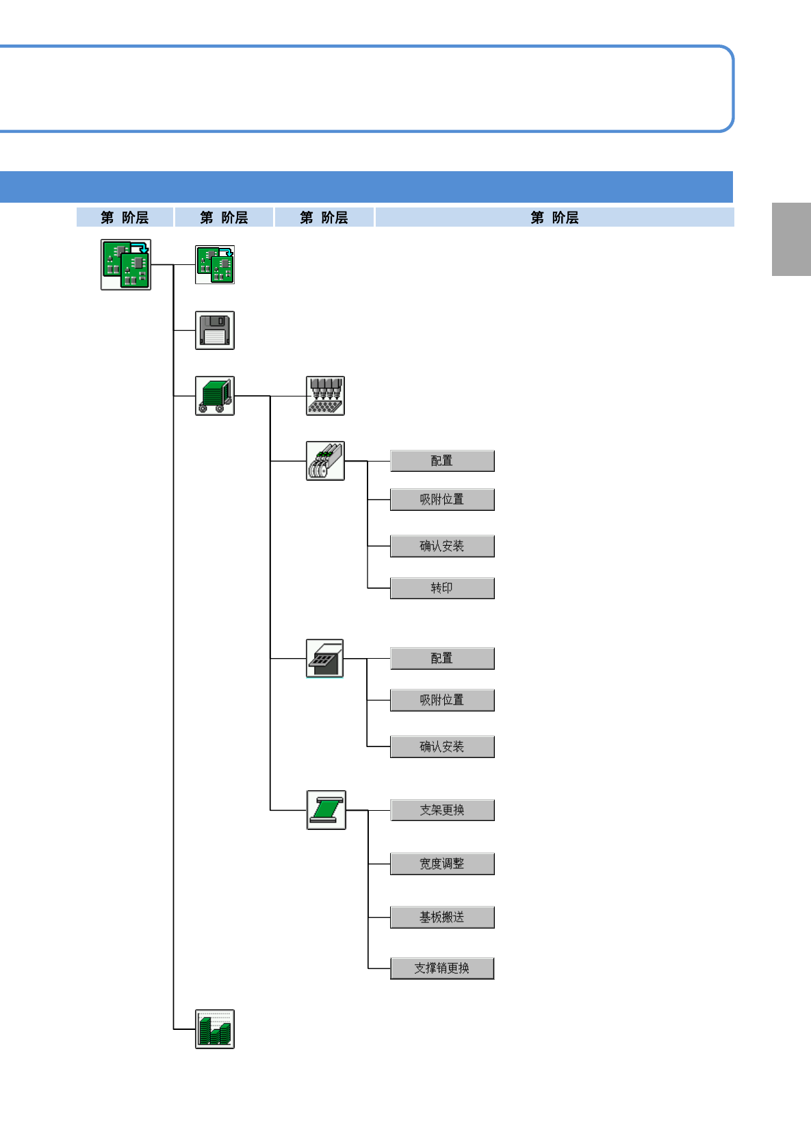 NPM-TT2 EJM1EC-MB-02O-00 2-2-2 -1 操作员模式 1 2-2-2 -1 各部位 名称 1 操作篇 2 - 2 - 2 主菜单 生产菜单 ( 生产前 ) 生产菜单 ( 生产中 ) 变更操作模式。 变更操作模式 生产开始 开始自动生产。 调整用软件开关 为了调试设备,暂时变 更操作环境。 余数监视器 确认生产线上的各工作 台的元件用完信息。 确认吸着状況。 吸着监视器 状況监视器 显示运转中的生产信息 ,零部件…