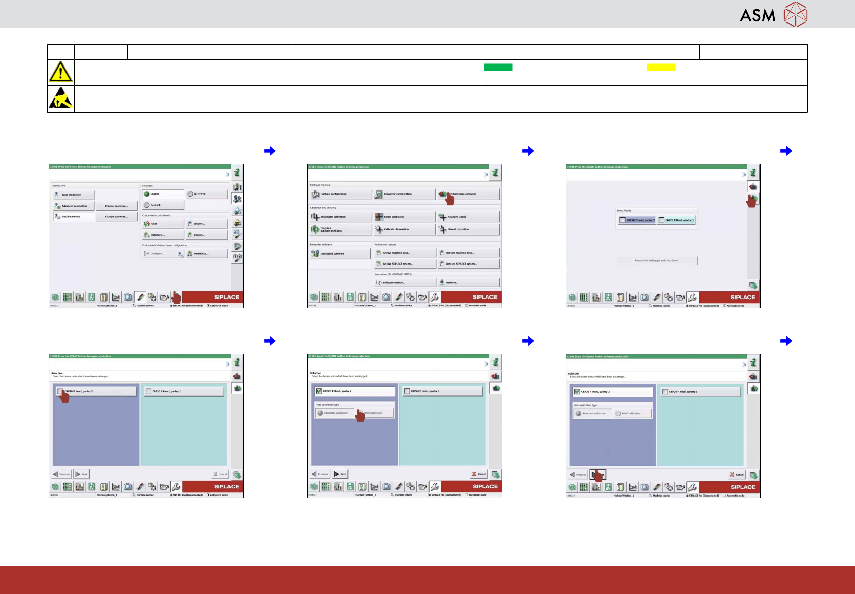 7 Click on "Machine calibration". 8 Click on "Fast hardware exchange". 9 Click on "Head exchange".