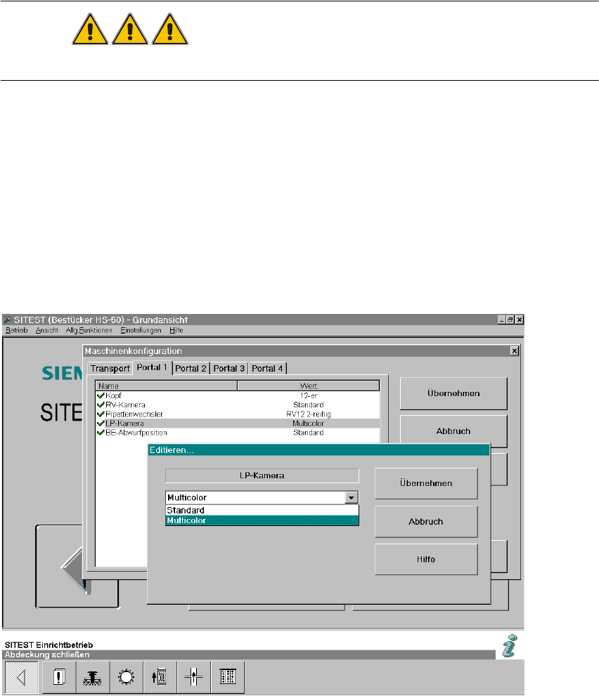 SIPLACE HS -50/HS-60 1 Nachrüstanleitung fü r LP-Kamera Multicolor HS-50 / HS -60 Ausgabe 11/2004 1.4 SITEST: Konfiguration und Be leuchtungstest aller LP-K ameras Multicolor 29 : Ma rkieren S ie im Kon figuratio nsmenü …