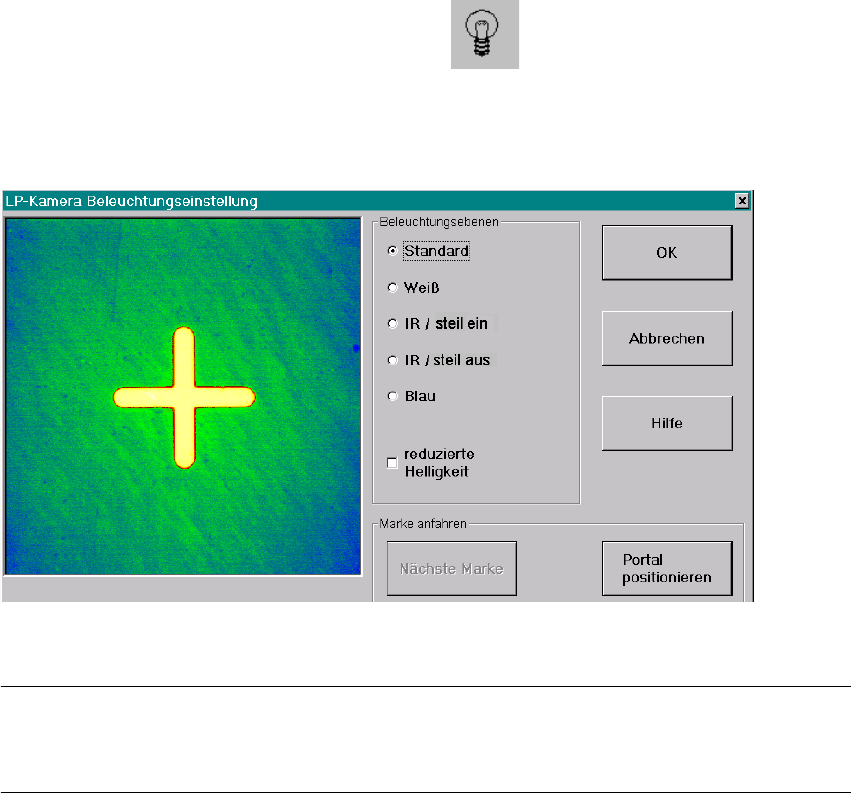Die optimale Auswahl der Beleuchtung muß mittels der Funktion "Marke Testen" für das zu be-
