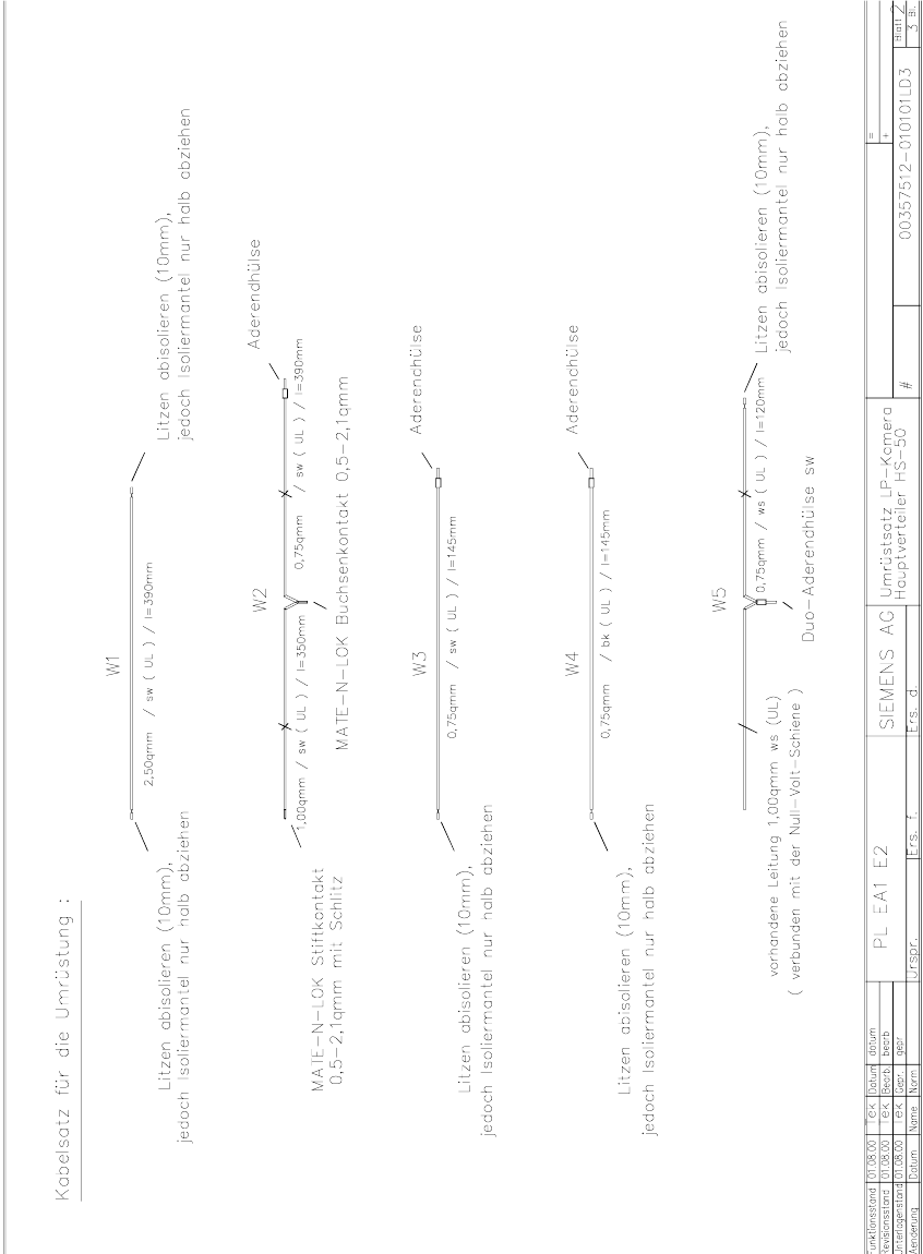 Abb. 1.13.7 Hauptverteiler HS-50, Umrüstsatz Kabel W1 bis W5