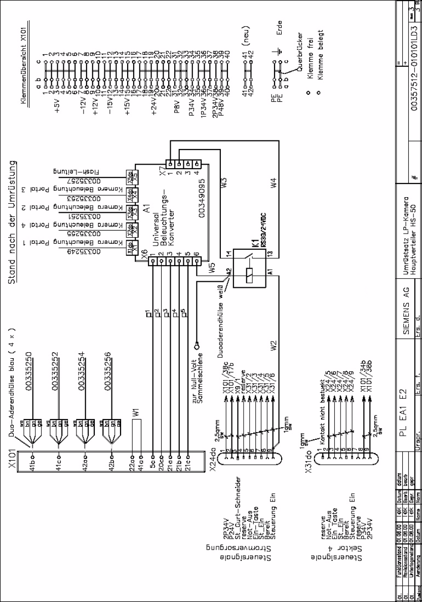 SIPLACE HS-50/HS-60 2 Retrofit Instructions for PCB Camera Mult icolor, HS-50 / HS-60 11/2004 Edition 2.6 Changeover at Main Distribution Frame 55 2 Hauptverteiler HS-50 / H S-60, Verdrahtung nach der Umr üstung 2