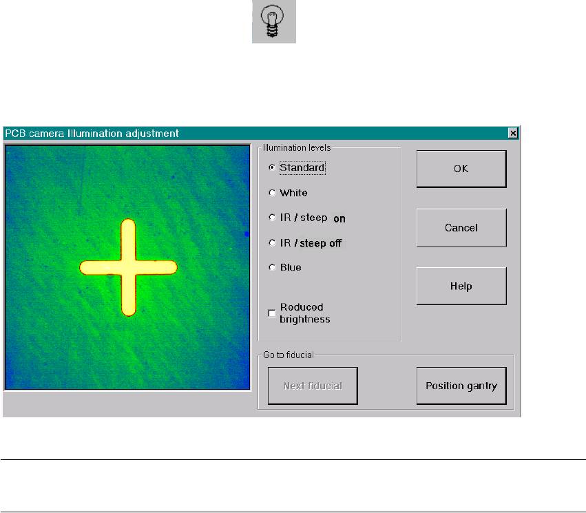 The best illumination selection must be ascertained by using the function "Test fiducials" or the
