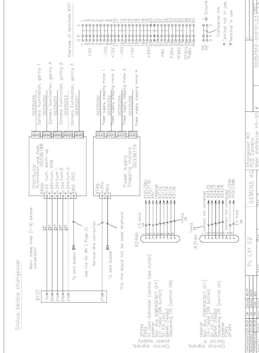 2 Retrofit Instructions for PCB Camera Multicolor, HS-50 / HS-60 SIPLACE HS- 50/HS-60 2.14 Attachments: PCBs, Cables and Circuit Diagrams 11/2004 Edition 82 Fig. 2.14.7 Main Distribution Frame for HS-50, Retrofit / Chang…