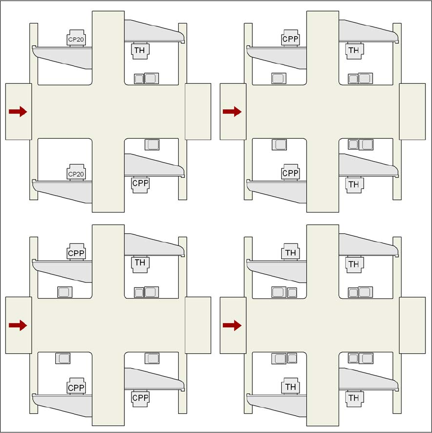 P1, P2, P3, P4 Portal 1, portal 2, portal 3, portal 4