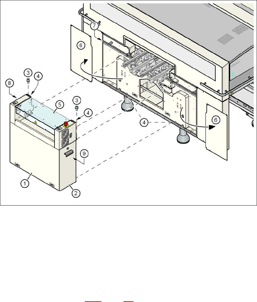 Instrukcja eksploatacji SIPLACE ser ia X Od wersji oprogramowania SR.70x.xx Ustawianie i uruchamianie Wydanie 01/2011 Ustawianie automatu 255 → Zdejmij obie blachy boczne (poz. 6 na rys. 4.3 - 15 , strona 254 ). OSTRO Ż …