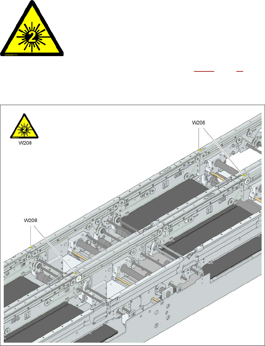 Rys. 2.2 - 11 Tabliczka ostrzegawcza W208 "laser klasy 2" na transporterze płytek drukowanych