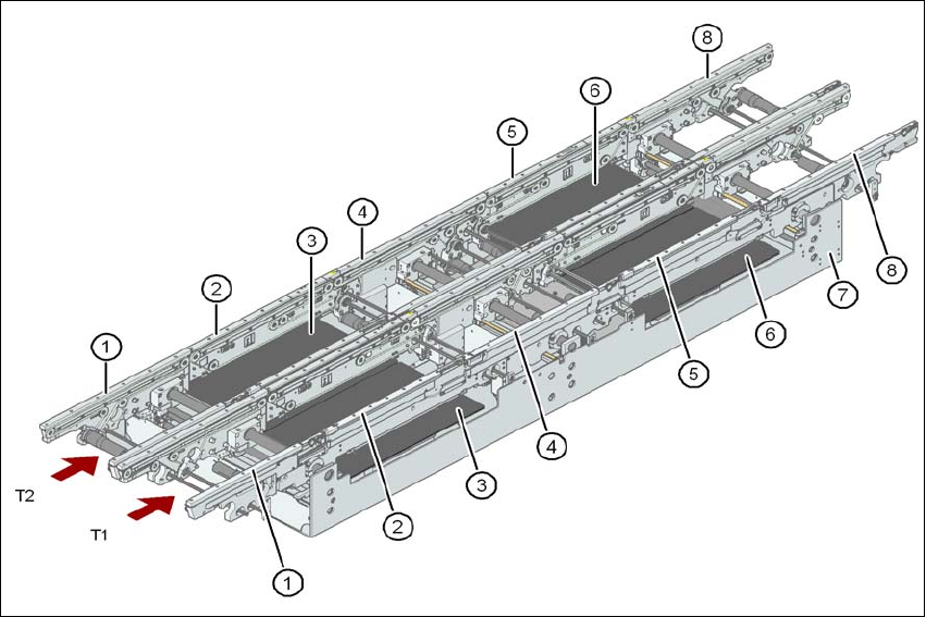 Transportery płytek drukowanych są zbudowane jako pięcioczłonowe transportery, złożone z