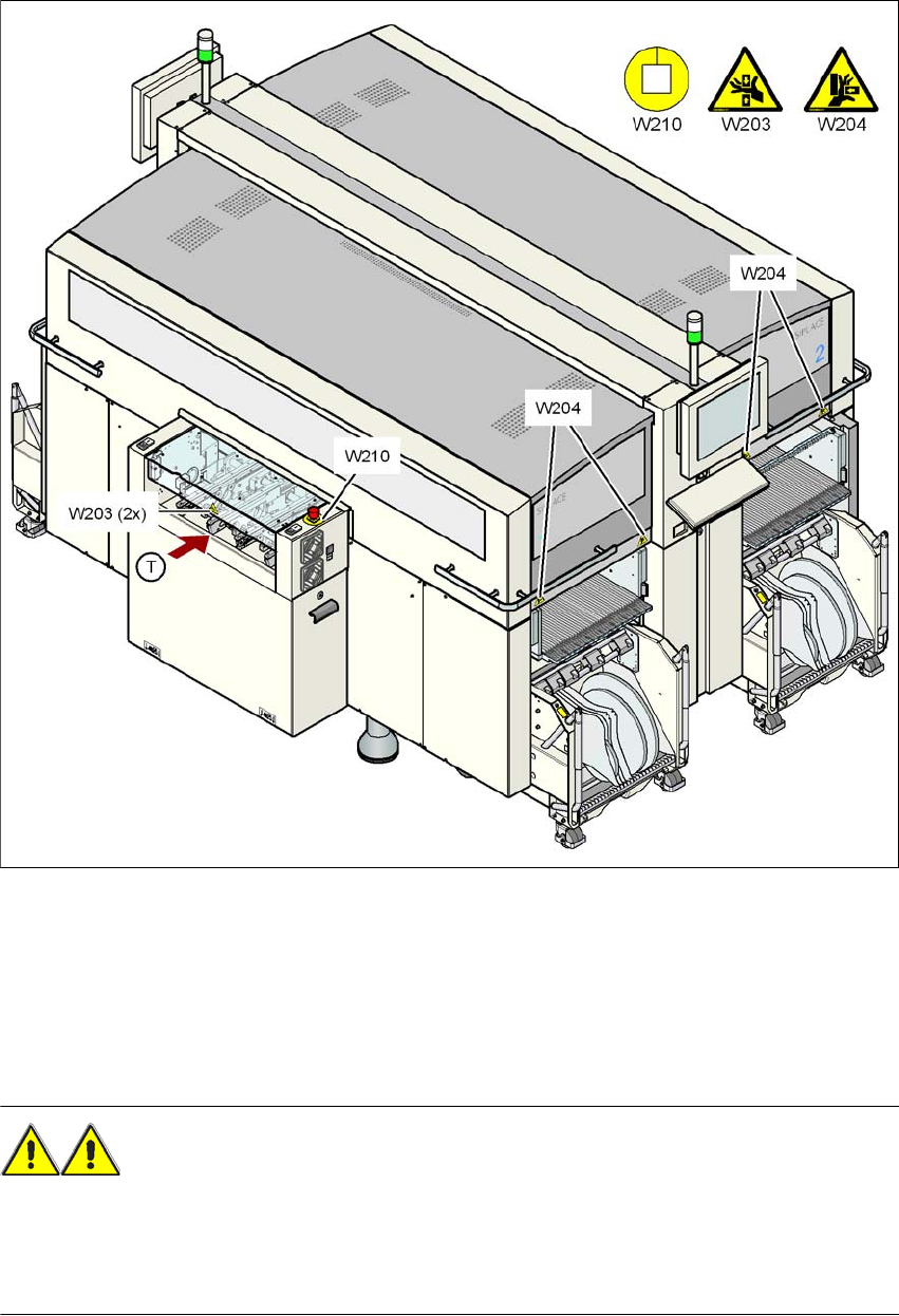 Instrukcja eksploatacji SIPLACE ser ia X Od wersji oprogramowania SR.70x.xx Bezpiecze ń stwo eksploatacji Wydanie 01/2011 Tabliczki ostrzegawcze 43 2.2 T abliczki ostrzegawcze 2.2.1 T abliczki ostrzegawcze automatu T abl…
