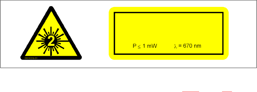 Fig. 6.18 - 1 Contrassegno di classe laser 2 per il sensore