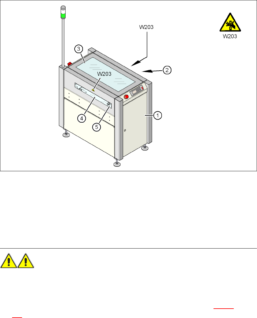 Fig. 6.22 - 1 Pericolo di schiacciamento nel lato d'entrata e d'uscita del Productivity Shuttle del SIPLACE serie X