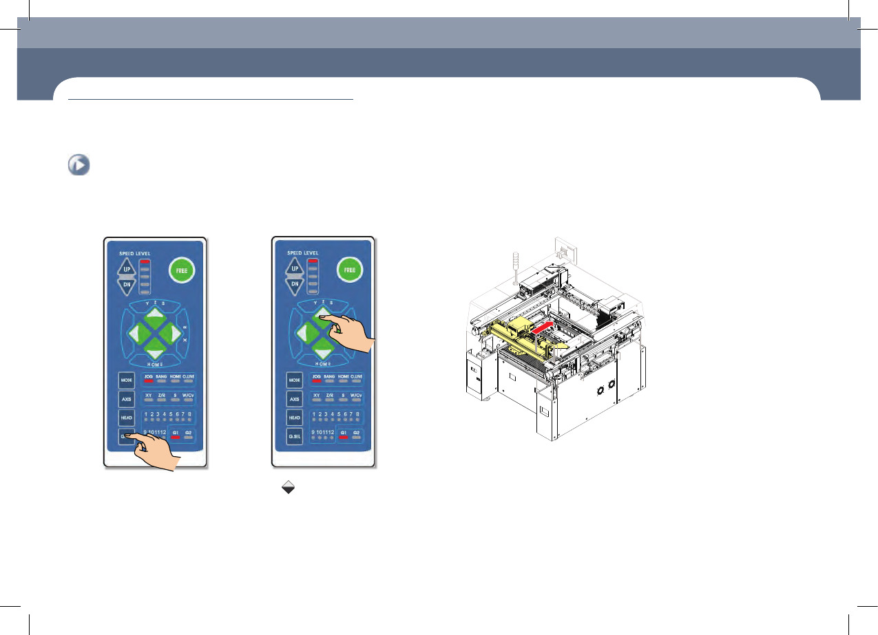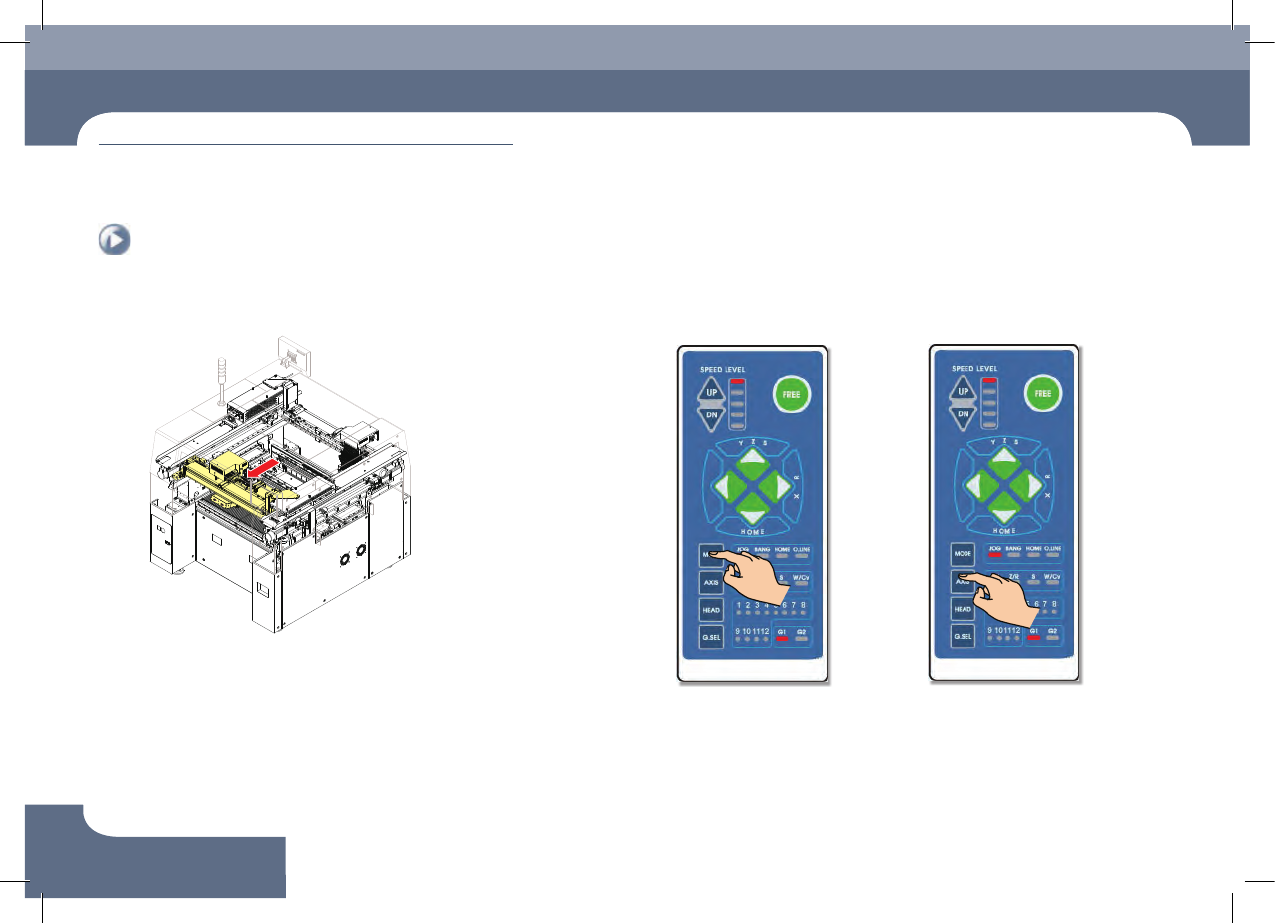 Chap ter 1 本部分介绍设备维护作业环境、作业工具、维修项目等。 维护条件 Fas t Chip Sh oot er SM 471 PLU S Ma in ten an c e Ha nd b oo k 1-4 维护前共同执行程序 维护条件 5. Front X Frame 前面移动 5. Front X Frame 后面移 动 1. 按 'MODE ' 按钮 按 'JOG' 按钮 2. …