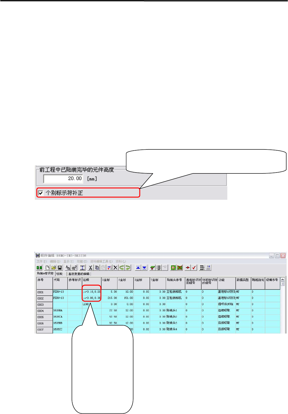 【注释】 根据全体基准的识别结果,可以对个别基准的标识符坐标进行补正。