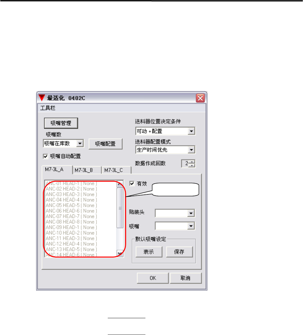吸嘴自动配置 如果勾选了<吸嘴自动配置>的复选框时,在最适化时就会自动进行吸嘴
