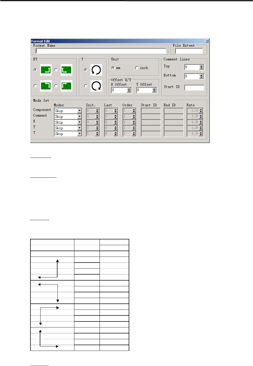 对 CAD 数据中 T 情报(旋转角)的轴方向进行指定。箭头所指的方向为正方向。在执行 CAD 变换时,
