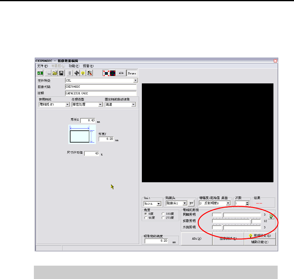 阻元件,辅助照明亮度设定为 10 左右,而标准片式电容元件则设定在 12 左右。