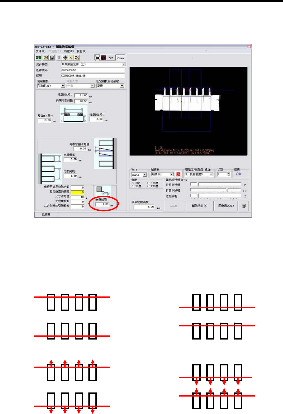 2:引脚检索线在引脚外侧的稍微偏内侧,最后对引脚先端位置进行再次检测
