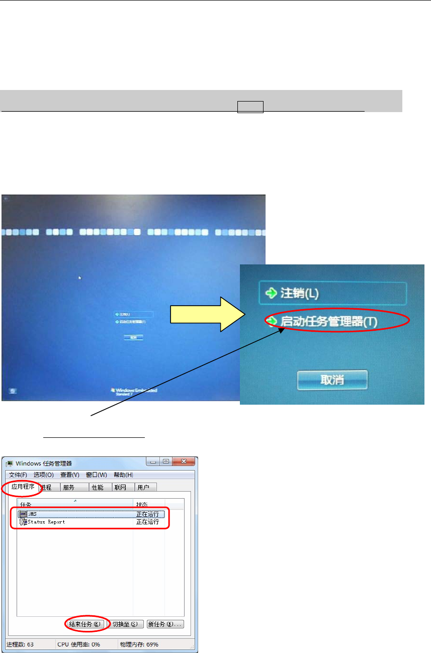 ③ 在[Windows 任务管理器]>[应用程序]的画面中,将所有的应用程序都结束,并关闭该画面。