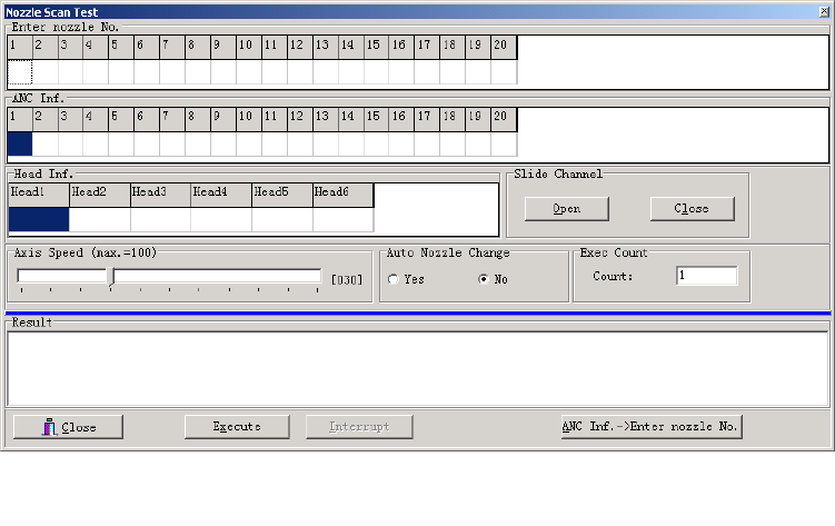 ④ 点击<Execute>按钮,基板相机将对 ANC 进行扫描识别,被识别的吸嘴序号将在[Result]