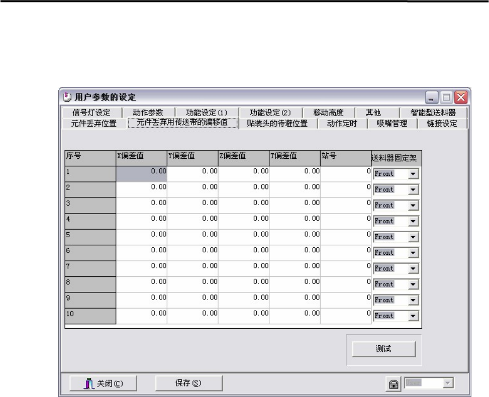 对设置元件丢弃用传送带的送料器固定架、站号、偏移值等进行设定。