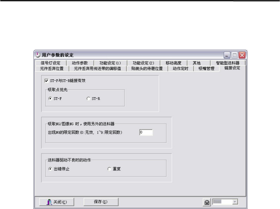 如果勾选该项目,前部送料器固定架和后部送料器固定架的链接就变为有效。