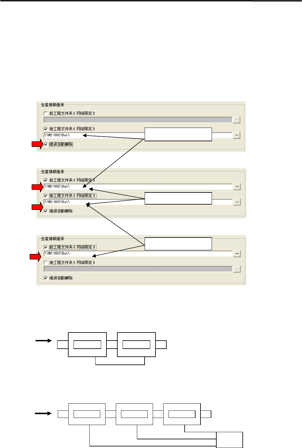 【例】在 3 台机器连接的生产线上,第 1 台与第 3 台机器之间就不能进行情报继承。请务必