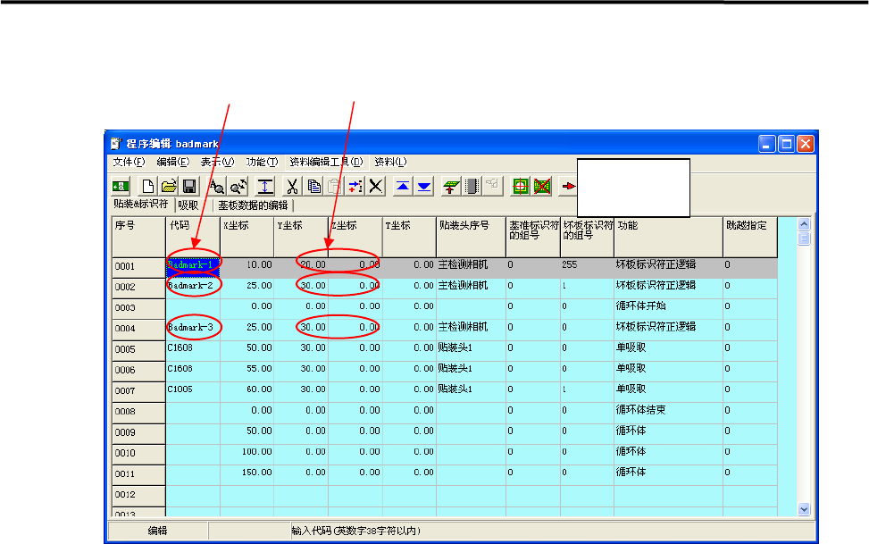 1. 在制作贴装程序时,要注意在各个机器之间进行情报继承时,坏板标识符的指定,