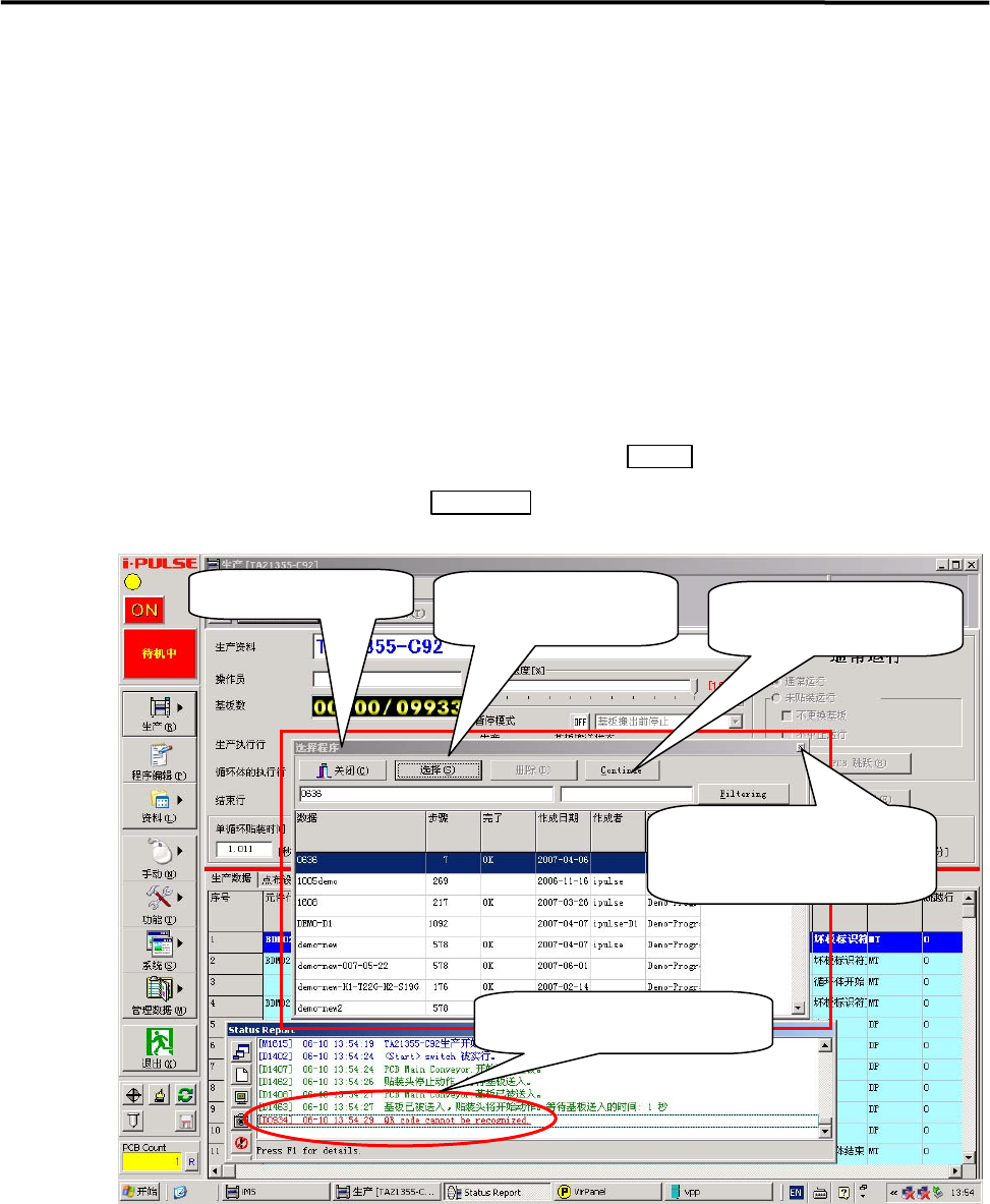 ②点击<Continue>按钮,使当前状态的生产程序继续进行。
