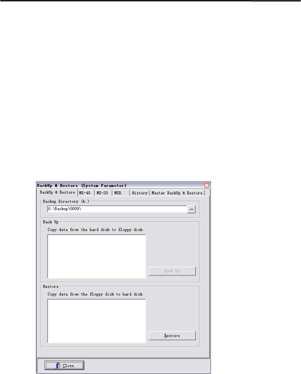 【菜单】 系统>系统参数>Tool>Backup & Restore