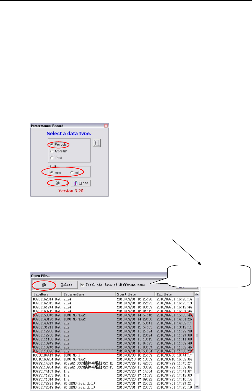 ⑤ 参考程序名称和日期时间,对文件进行选择(通过按下 Ctrl 键并同时点击选定文件,还可以